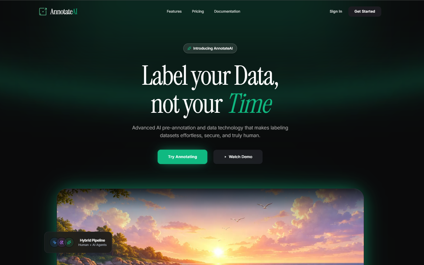 The platform slashes annotation time by 90% by using AI for tedious work while reserving human bandwidth for critical quality control. It's built to scale from experiments to production, providing high-quality, model-ready data faster with both AI efficiency and human oversight.